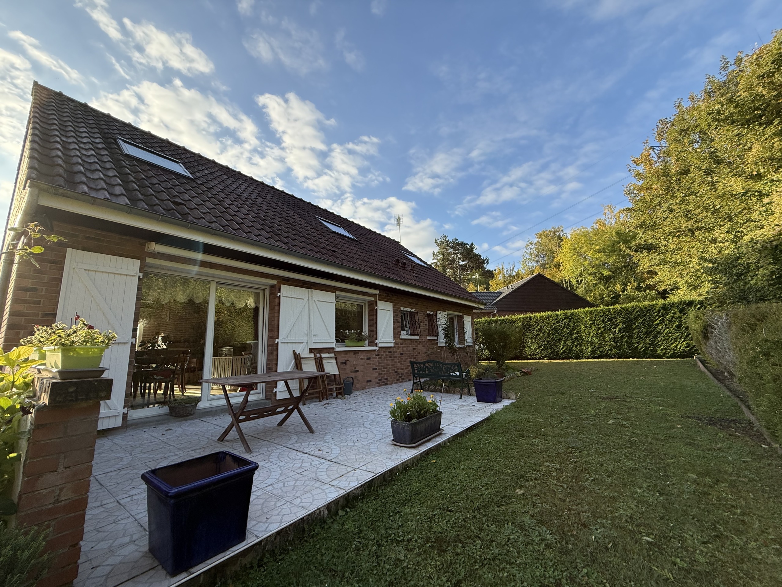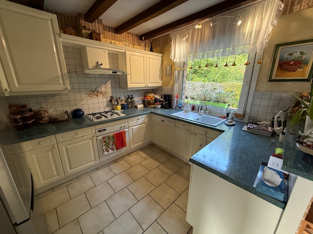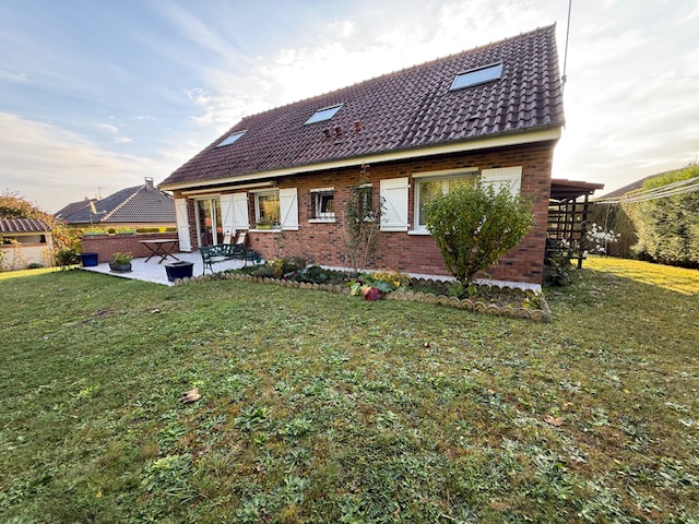 Pavillon individuel de qualité comprenant : Hall d’entrée, un beau séjour avec cheminée, cuisine équipée ouverte, 3 chambres de plain pied, salle de bain et wc.