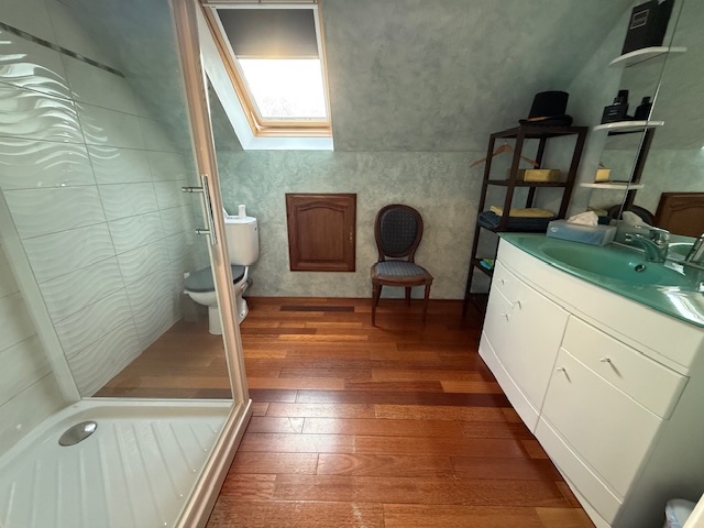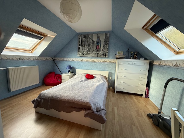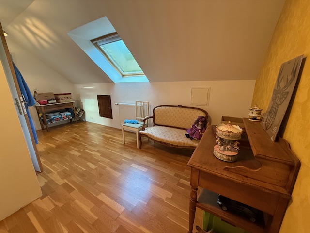 A l’étage : Palier, 2 chambres, salle d’eau avec wc.