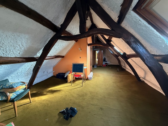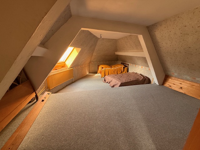 A l’étage : Grand palier et une chambre mansardée.